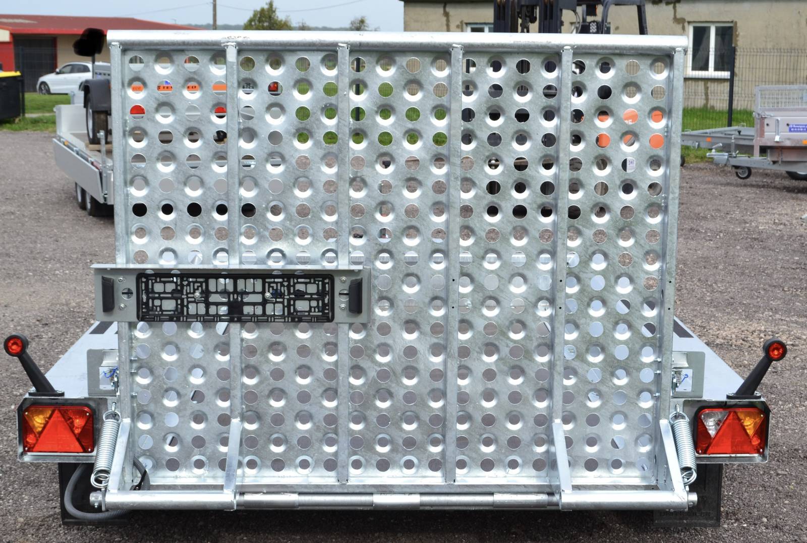 Remorques pour mini pelle, dumper, désoucheuse...... ect. Avec essieux KNOTT où AL-KO (suivant stock fournisseur). Plancher bois marine. Support godet. Porte pont / hayon avec béquilles. Feux arrière muni d'une prise 13 broches. Anneaux d'arrimage intérieure. Équiper d'une roue jockey automatique de 60 mm.